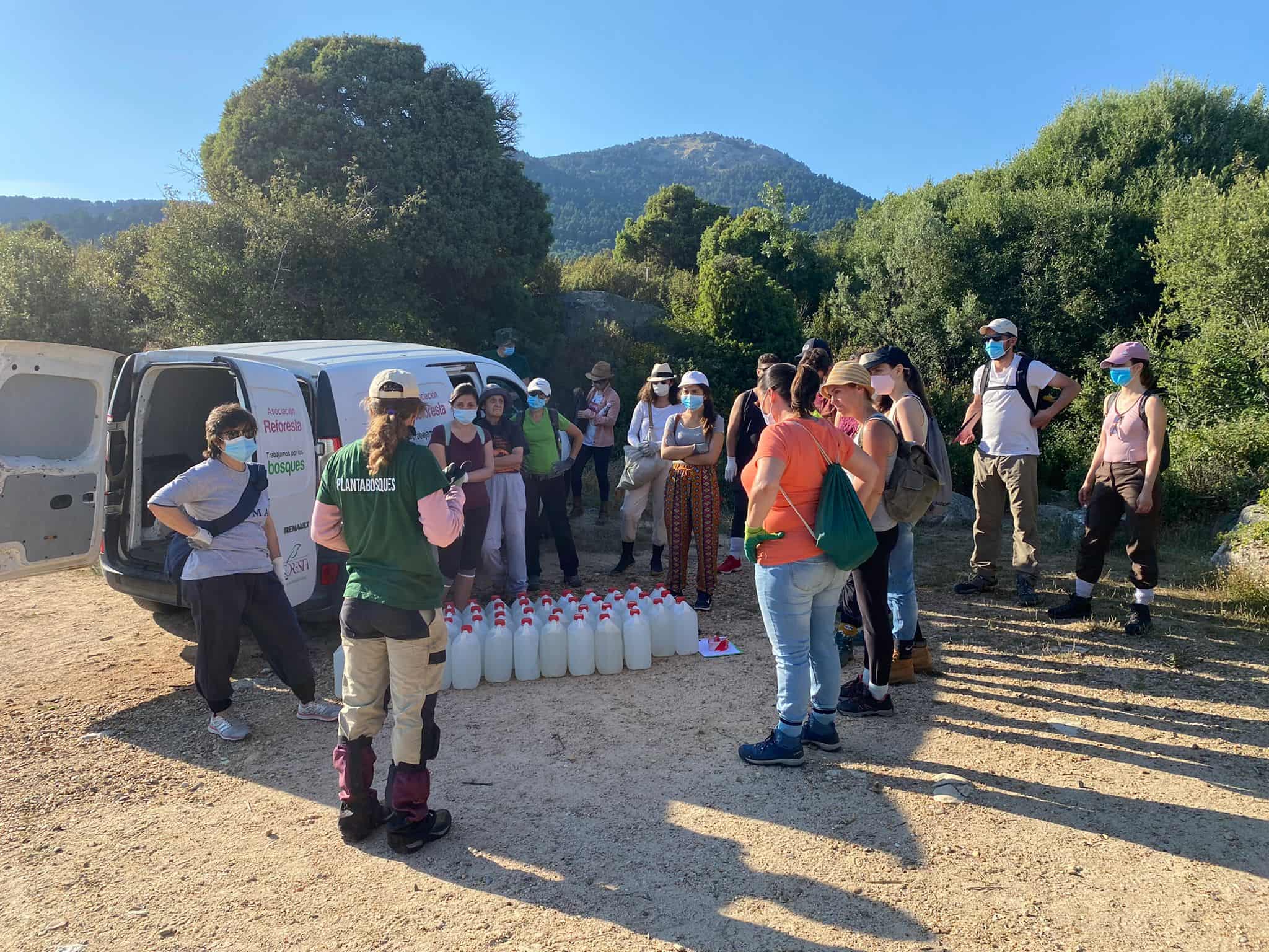 Si ya es mágico reunir a decenas de personas que no se conocen de nada para regar árboles en verano, imaginad cómo puede ser hacerlo al atardecer, con esa luz tan suave que nos hace vencer el cansancio. Así regamos 525 árboles y arbustos en La Barranca de Navacerrada (Comunidad de Madrid) el pasado viernes.
