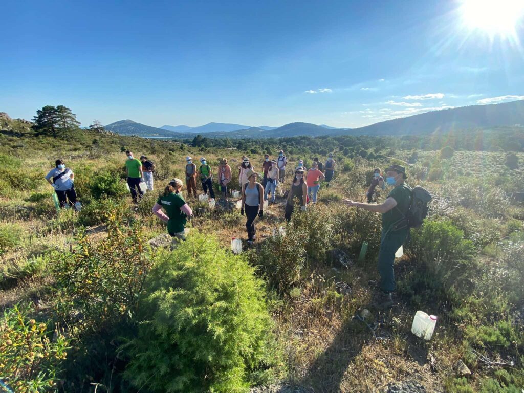Jornada de riego con voluntarios en Navacerrada, Madrid.